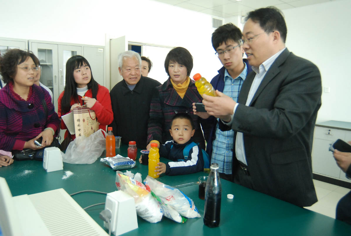 揭牌仪式结束后,学校邀请崔波、赵祥忠、曲静然、于海峰、刘金海、路玉峰等6位教师,分别介绍了各自研究领域的科普知识,并现场回答了大家关心的热点问题。他们以专业的眼光,科学的论断,耐心的阐释,通俗的语言为大家解疑释惑,赢得了大家的尊重。学校还组织热心市民学习宝石鉴定知识,了解食品添加剂在饮料、海带等食品中的应用,并实地参观了我校分析测试中心。整个开放日活动内容丰富,群众反响热烈。