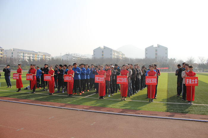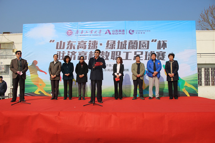 4月1日 91香蕉视频,由校工会主办,山东高速地产集团,绿城管理集团承办的齐鲁工业大学“山东高速·绿城蘭园”杯驻济高校教职工足球赛在学校隆重开幕,副校长周有波,山东高速绿城管理集团蘭园项目营销总监张园园,山东师范大学,济南大学,山东女子学院,山东管理学院,山东工艺美术学院,山东农业工程学院6所高校的工会领导出席开幕式,开幕式由校工会主席冯喜平主持。