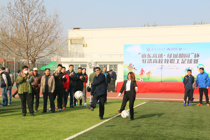 最后,周有波宣布齐鲁工业大学“山东高速绿城•蘭园”杯驻济高校教职工足球赛开幕 91视频下载,并为本次比赛开球。