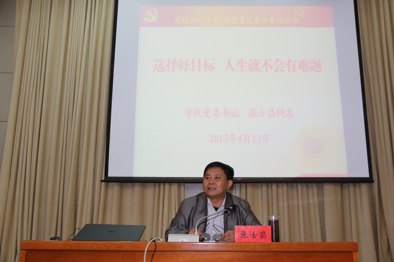 4月13日下午,校党委书记,党校校长张士昌在办公楼一楼报告厅,给学校2017年第一期党员发展对象培训班的学员上党课,党委委员,副校长周有波主持,各分党校校长 91香蕉视频,副校长,党课教师等与党校学员一起聆听了党课。