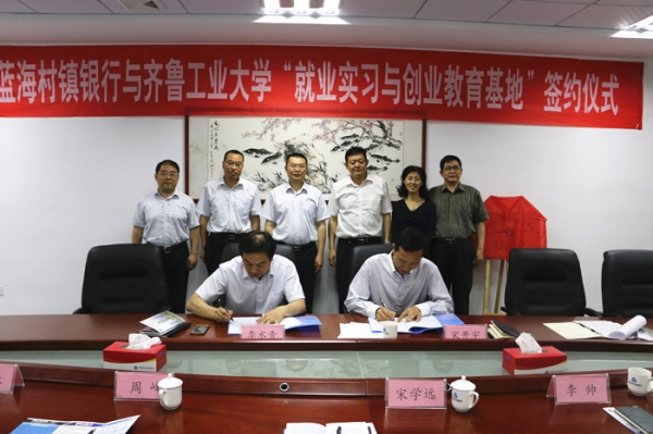 5月16日,“齐鲁工业大学大学生就业实习与创业教育基地”签约暨揭牌仪式在平阴蓝海村镇银行举行 91香蕉视频,平阴蓝海村镇银行全体行级领导,金融学院党政负责人参加签约仪式。