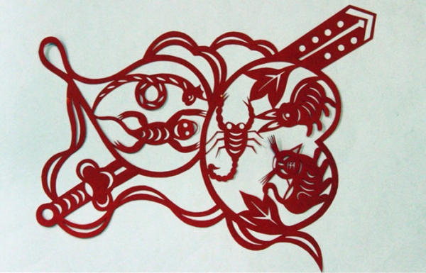 活动伊始,顾朋泉就端午节与贴“五毒”(五种动物:蛇,蝎,蟾蜍,壁虎,蜈蚣),佩香包习俗由来及其历史演变进行了简要介绍,顾朋泉认为“剪纸不是高高在上的艺术,它可以装饰居所,美化空间,明清时代端午节,民间还盛行剪纸以避恶,泄毒,镇病,”顾朋泉现场展示了“五毒”剪纸作品和香包制作流程和技巧,随后,同学们在老师的指导下,穿针引线 91香蕉,巧手缝剪,全身心地投入到剪“五毒”和做香包中,一幅幅生动精致的“五毒”剪纸作品和香包制品呈现在大家面前。