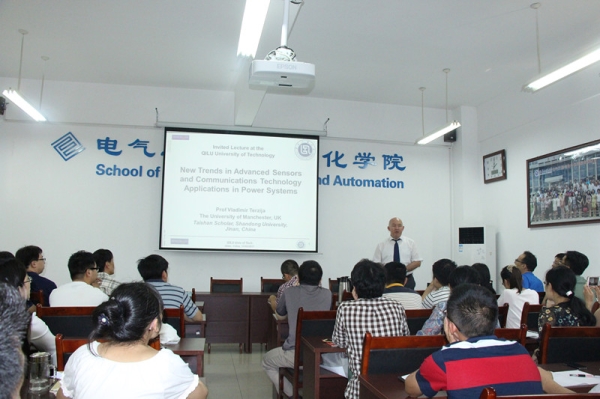 5月31日下午,应电气工程与自动化学院邀请,英国曼彻斯特大学Vladimir Terzija教授来校进行学术交流 91香蕉视频,并作了题为“New Trends in Advanced Sensor and Communication Technology Applications in Power Systems(先进传感器与通信技术在电力系统中应用的新趋势)”的学术报告,报告会由电气学院院长王仁人主持,电气学院部分专业老师和同学听取了报告。