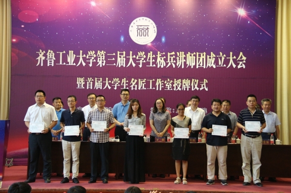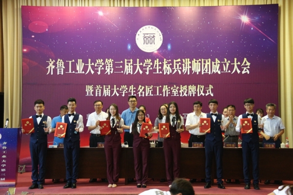 大会集中授予了张钦臻极匠工作室 91黄,刘怀顺装备设计创新工作室,邵珠建青年马克思主义者工作室等17个工作室为齐鲁工业大学首届学生名匠工作室,聘任了吴柯瑶,种宇涵,李华鹏等8位同学为第三届大学生标兵讲师团首席讲师,孟尧,李晓陇,李雨晴等5位学生为标兵讲师团讲师,聘任王先山,史岩彬,池振国等52位老师为讲师团和名匠工作室导师。