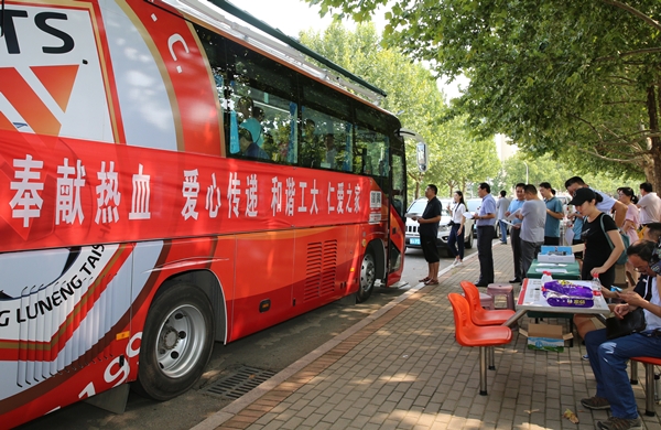 8月17日下午两点,齐鲁工业大学还没有正式开学,但长清校区一餐厅门口却停着一辆济南市血液中心的采血车 91香蕉视频,车前排着长长的教工队伍,他们正在等待为同事王宗睿献血。