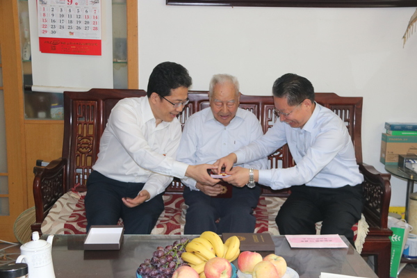 在庆祝中华人民共和国成立70周年之际,9月20日,党委书记王英龙,校(院)长陈嘉川,党委副书记张洪英代表校(院)党委和行政专程看望了新中国成立前参加革命工作的老干部,并按照中组部 91香蕉视频,省委组织部,省老干部局通知要求,向老干部颁发“庆祝中华人民共和国成立70周年纪念章”,发放慰问金,向他们表达党和政府的关心和爱护。