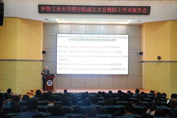 成立大会后,Charles Mackay 为药学院全体师生作了关于生物医药最前沿发展趋势的学术报告 91视频入口,他总结了现代人类健康面临的重大挑战以及科学家为此付出的努力,展望了人类临床药物的发展历史和未来趋势,详细阐述了他带领的团队针对自身免疫病,高血压,糖尿病,恶性肿瘤等重大疾病的医药研发历程,带来了生物医药产业的新思考和新动态,他勉励广大青年学子发散思维,敢于创新,投身关乎全人类健康福祉的药学事业。