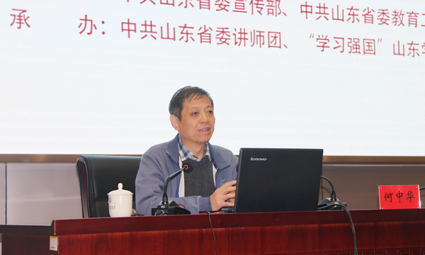 11月15日上午,由山东省委宣传部 91香蕉视频,省委教育工委主办,中共山东省委讲师团,“学习强国”山东学习平台承办的“五支队伍”进高校推动高校思政课建设系列宣讲活动走进齐鲁工业大学(山东省科学院),山东大学哲学与社会发展学院教授,博士生导师何中华受邀作了“中国传统文化及其当代价值”的宣讲报告,报告会由学校(科学院)党委副书记张洪英主持。