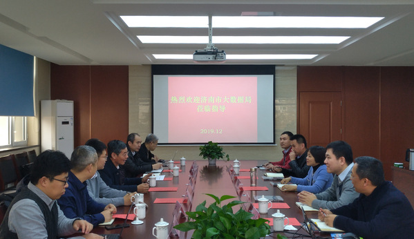 12月6日上午 91香蕉视频,济南市大数据局党组书记,局长张海灵,副局长赵炳跃等一行来计算中心进行调研交流,中心主任杨美红,副主任吴晓明及有关人员参加了座谈会。