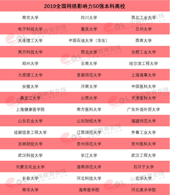 日前,中国教育在线2019年“高校大数据年度评选”获奖榜单公布 91香蕉视频,学校(科学院)获评“2019年全国网络影响力50强本科高校”。
