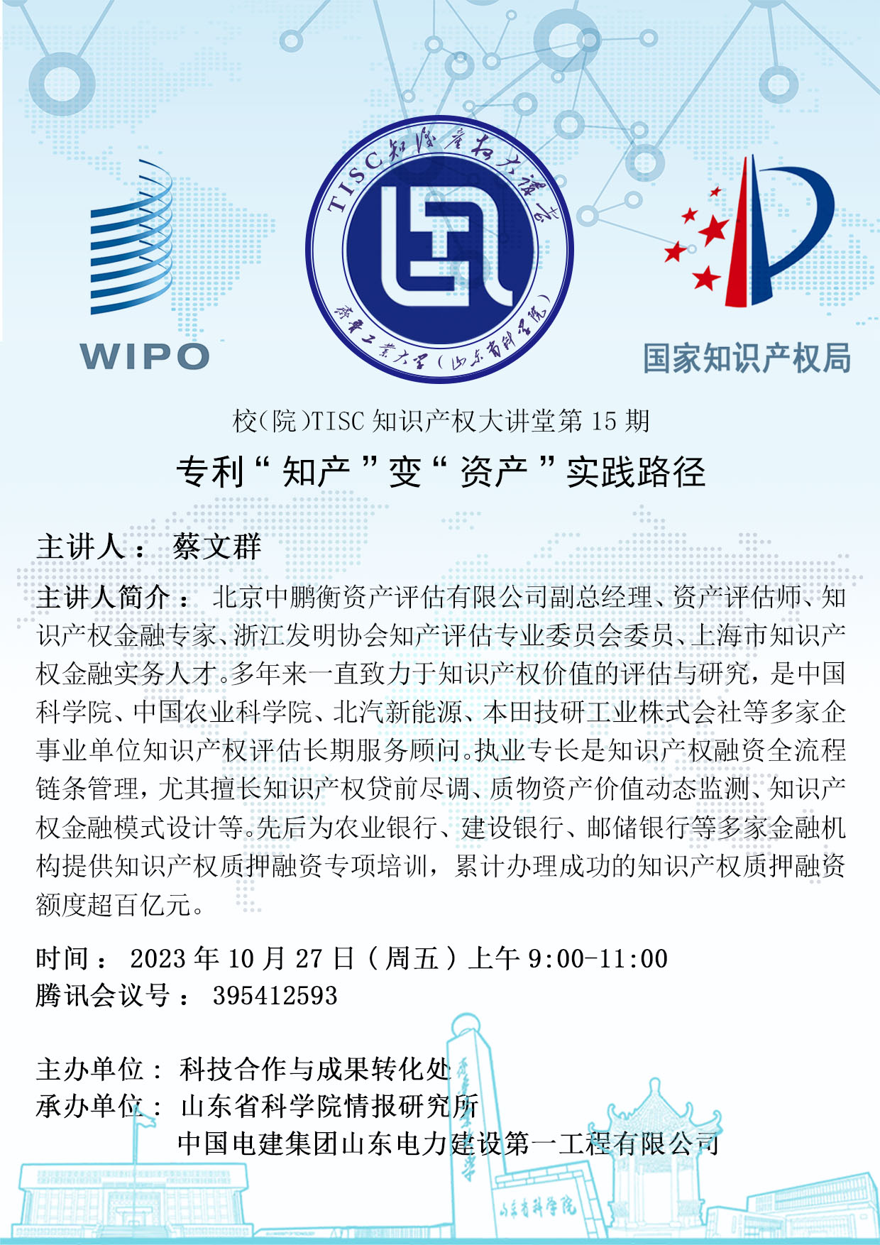 校(院)TISC知识产权大讲堂第15期:专利“知产”变“资产”实践路径
