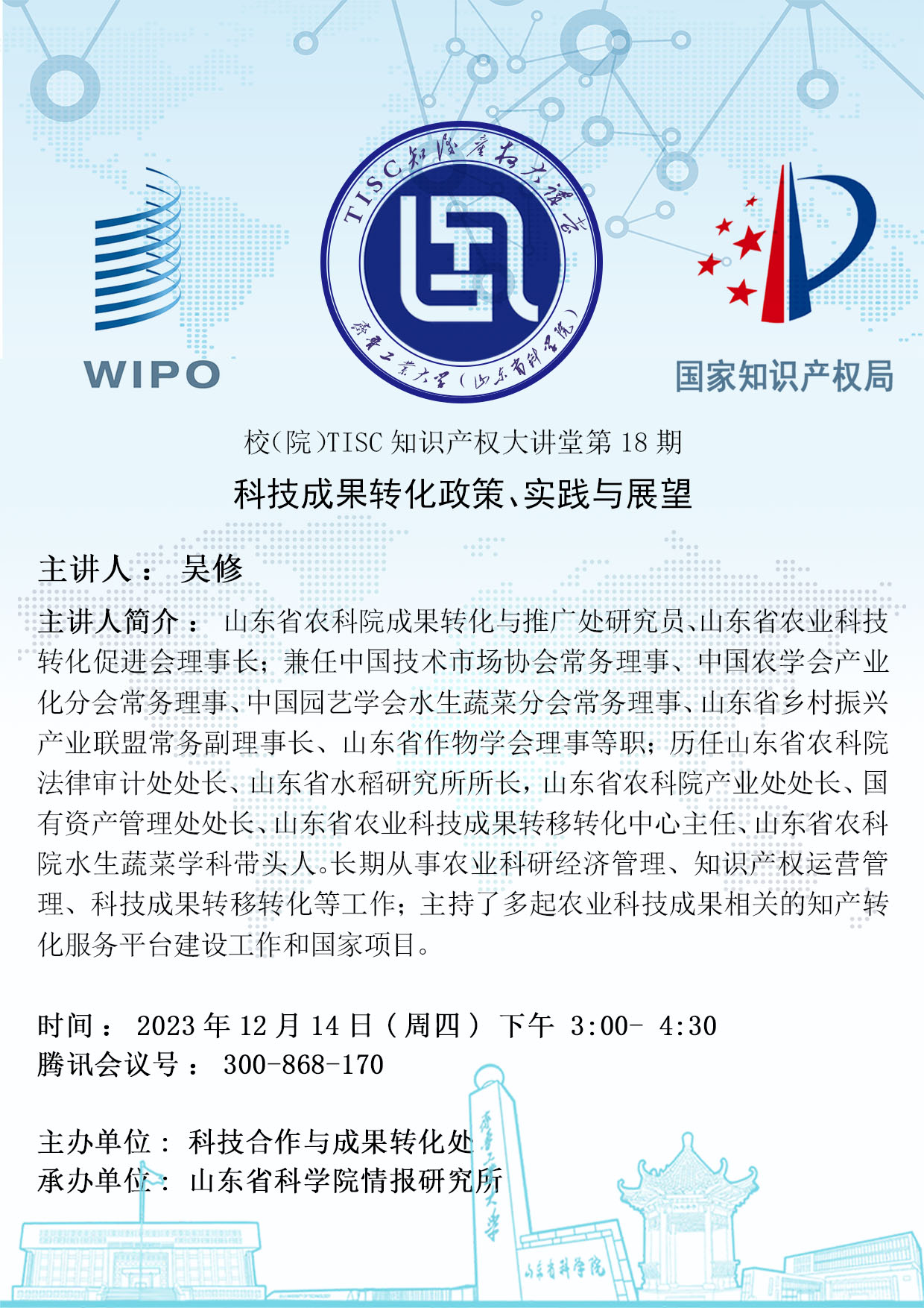 校(院)TISC知识产权大讲堂第18期:科技成果转化政策、实践与展望