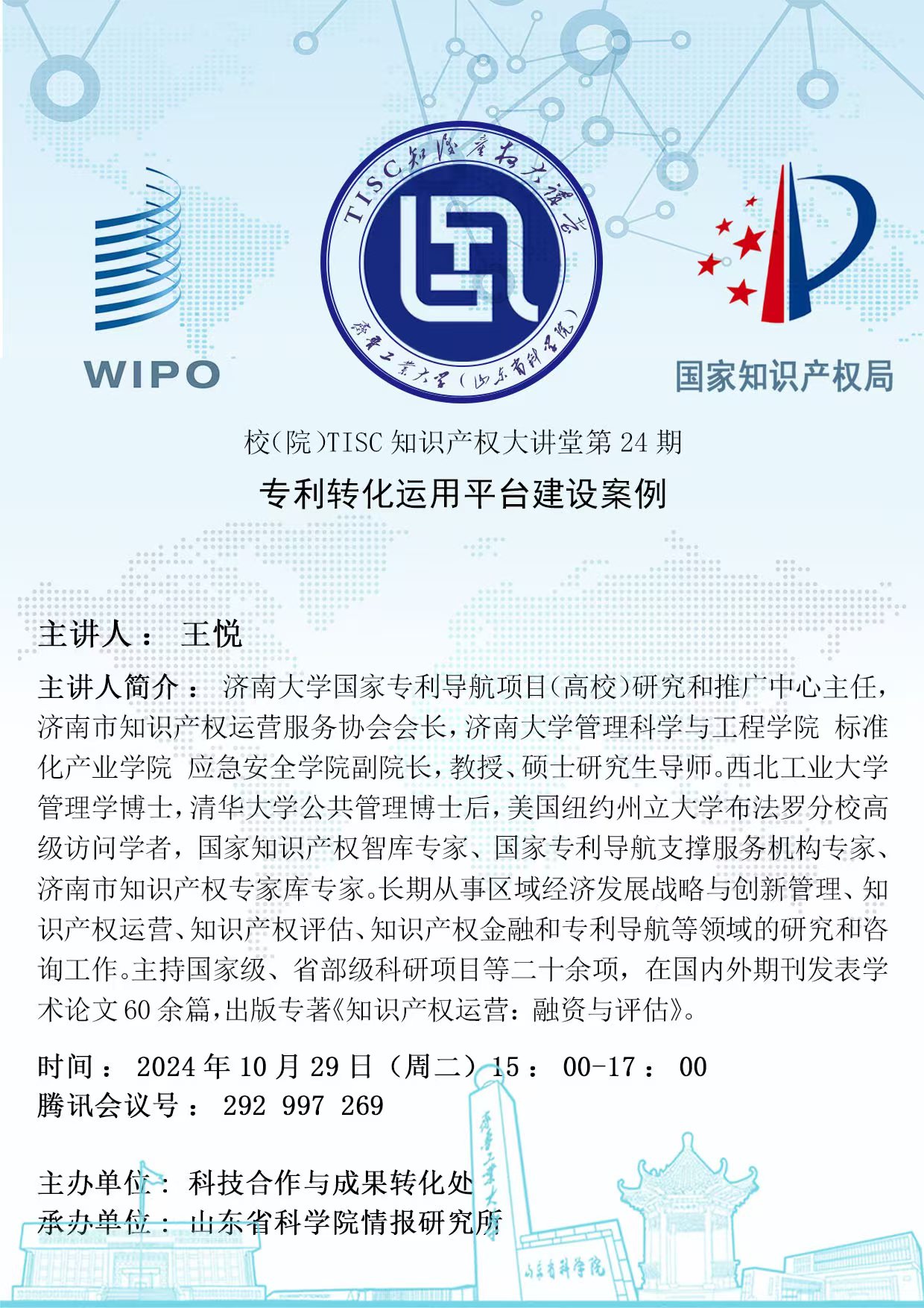 校(院)TISC知识产权大讲堂第24期:专利转化运用平台建设案例