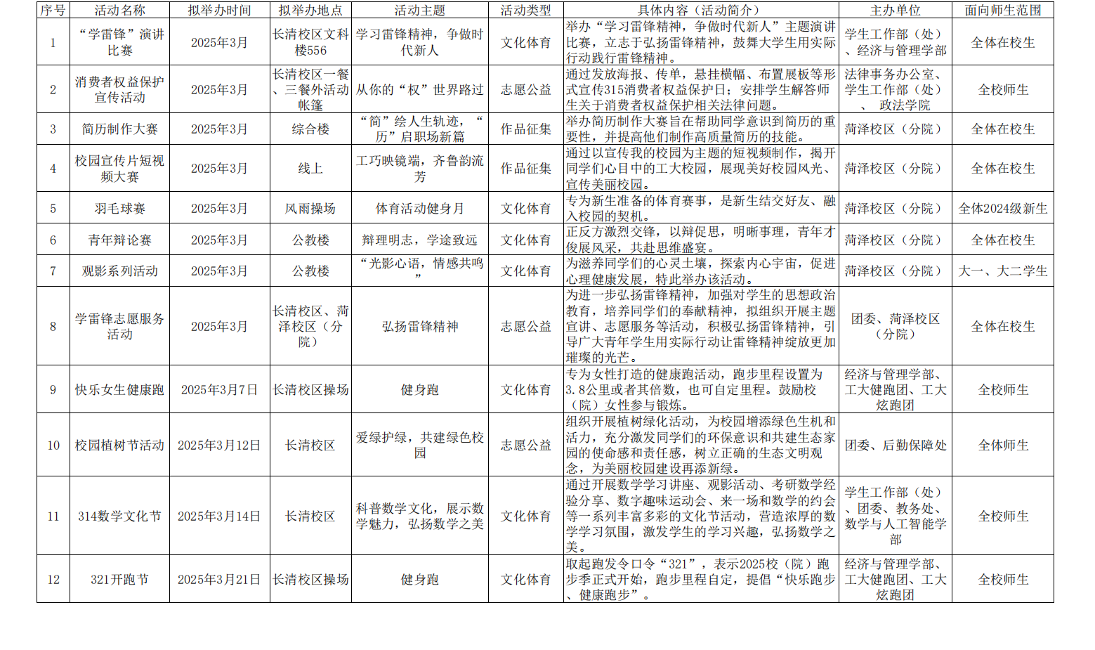 校(院)文化活动月历(2025年3月预告)