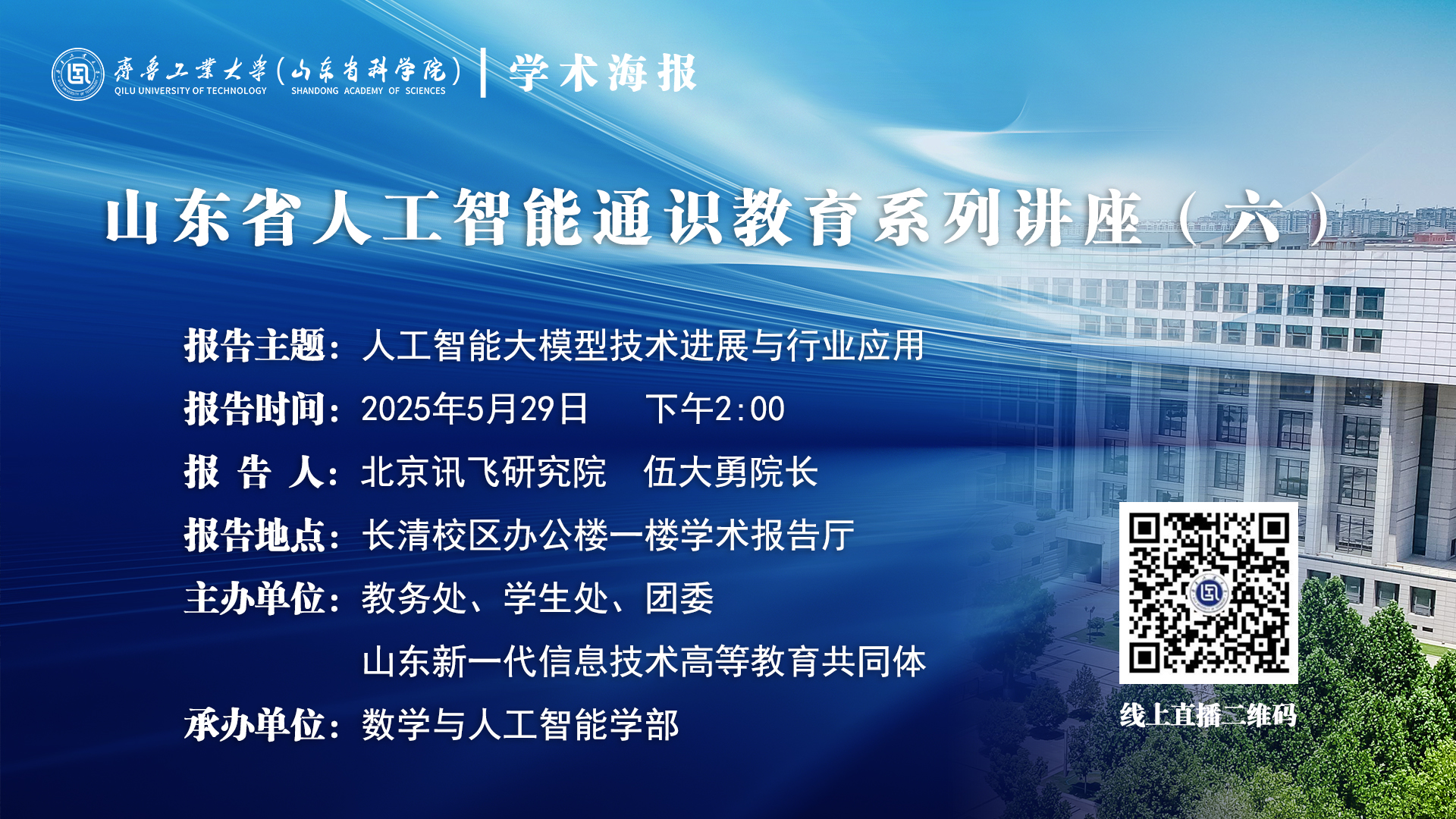 山东省人工智能通识教育系列讲座第六讲:人工智能大模型技术进展与行业应用