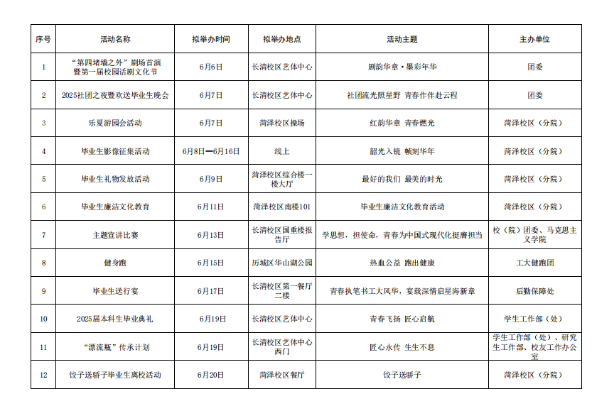 校(院)文化活动月历(2025年6月预告)