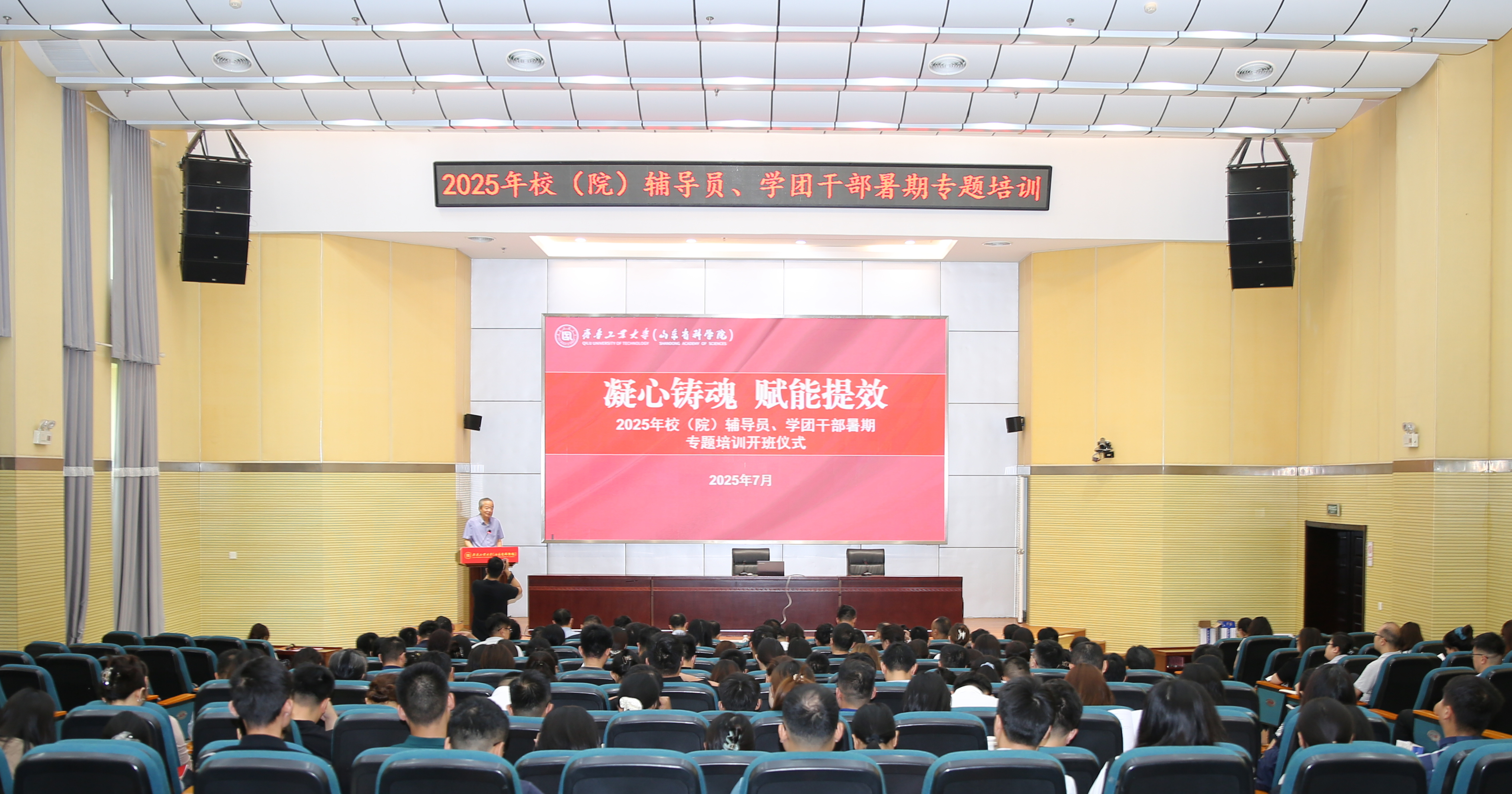 7月14日-16日,校(院)举办“凝心铸魂 赋能提效”2025年校(院)辅导员,学团干部暑期专题培训班,副校(院)长乔丙武出席开班仪式并致辞,组织部,宣传部,学生工作处,团委,研究生处等相关职能部门负责同志,各学部(院),菏泽校区(分院)全体辅导员 91香蕉视频,心理教师,全体学团干部参加活动,活动由学生工作处处长万金存主持。