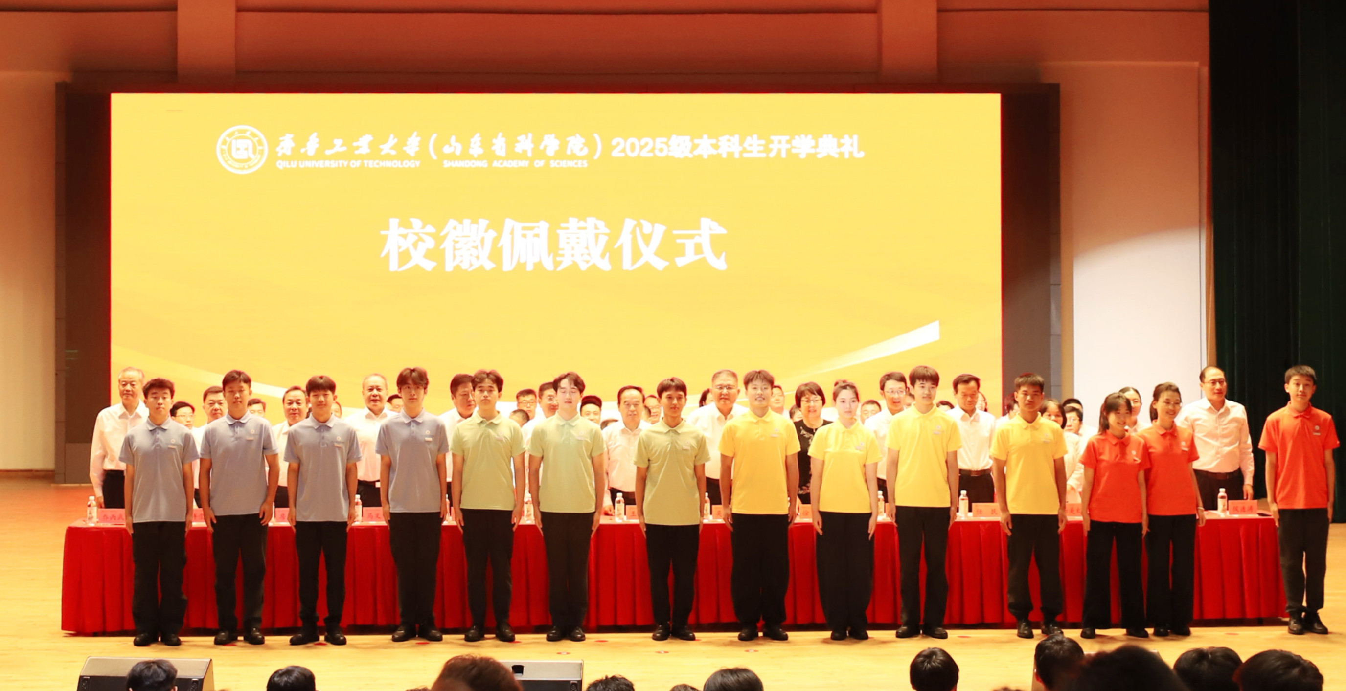 典礼上,校(院)领导和嘉宾为新生代表佩戴校徽,2025级新生自行佩戴,校徽置于胸前,寓意“明德励志,崇实尚能”的校训精神将在新一届学子中传承,鼓励同学们承担起爱校荣校,传承弘扬工大(科院)精神的责任与使命 91黄。