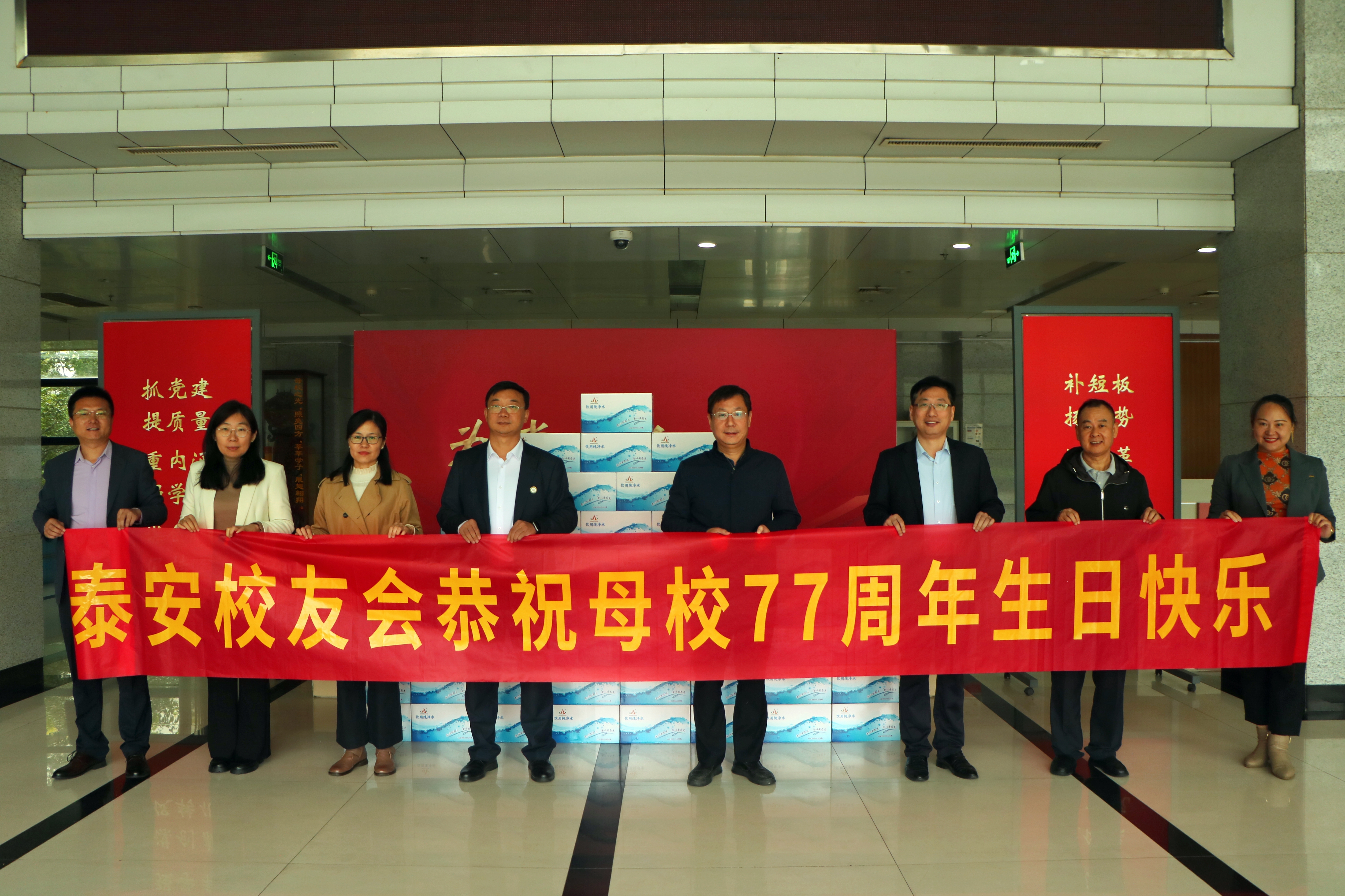 10月10日,泰安校友会向母校捐赠定制饮用水 91香蕉视频,为返校日提供“水力”支持,校(院)党委副书记刘玉出席活动,校友工作办公室,材料2000级校友,泰安校友会副会长兼秘书长张钦强参加仪式。