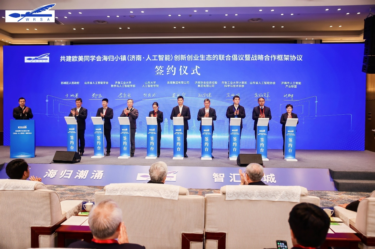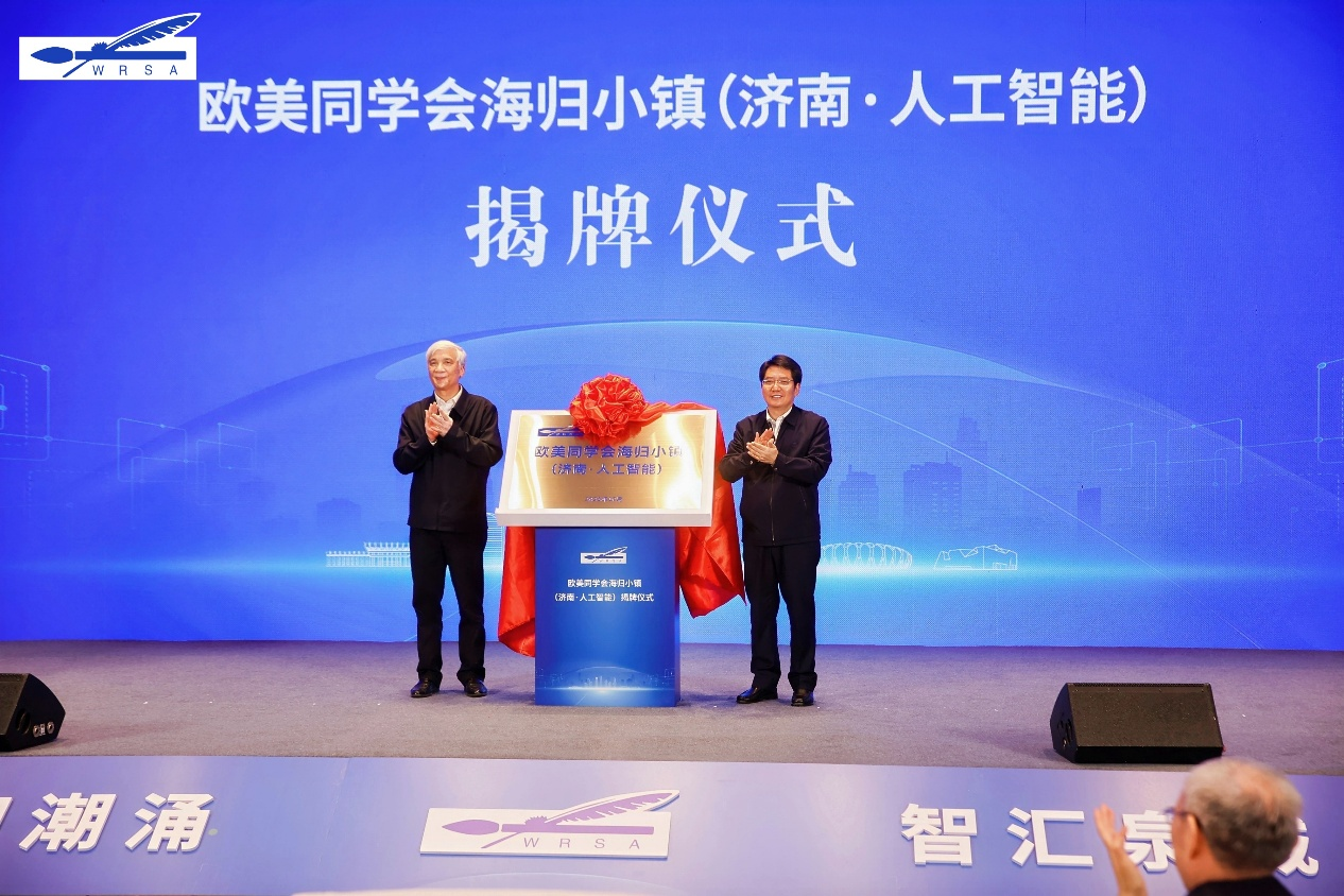 丁仲礼,邓云锋共同为海归小镇揭牌,海归小镇(济南·人工智能)是由欧美同学会和山东省共同推动建设的重要创新载体 91香蕉,以人工智能全链条生态小镇为目标,将建设成为具有全国影响力的人工智能创新示范区和新质生产力培育高地。