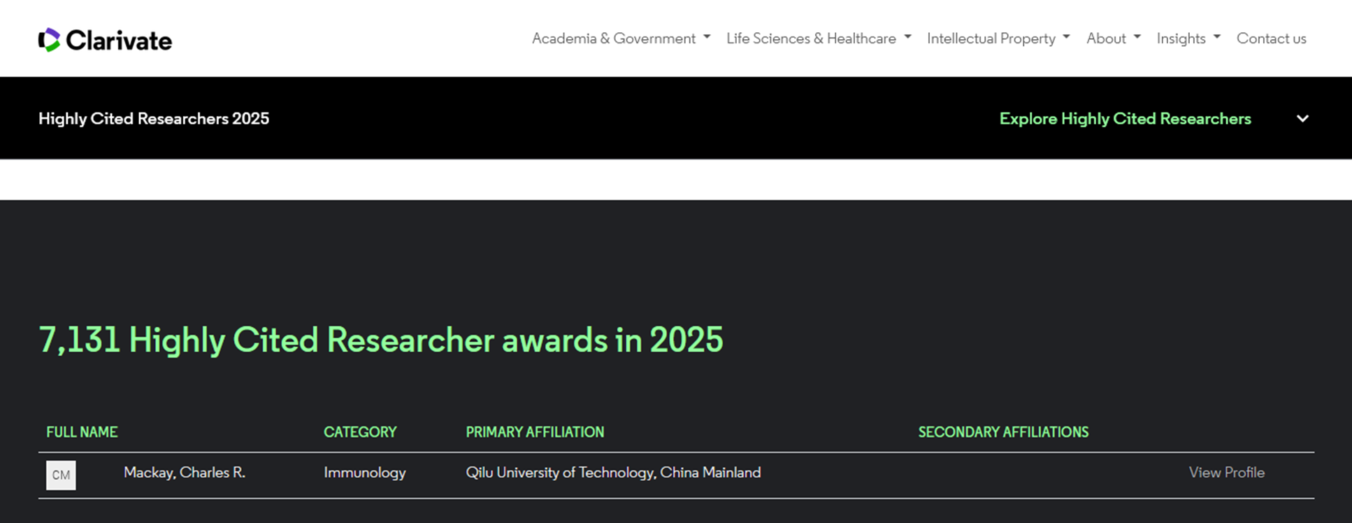 11月12日,科睿唯安正式发布2025年度“全球高被引科学家”(Highly Cited Researchers2025)名单,澳大利亚科学院院士 91香蕉视频,齐鲁工业大学(山东省科学院)药学院名誉院长查尔斯·麦凯(Charles Mackay)教授连续两年以齐鲁工业大学(山东省科学院)为唯一单位荣耀上榜,成为校(院)首位实现“两连冠”的科学家。