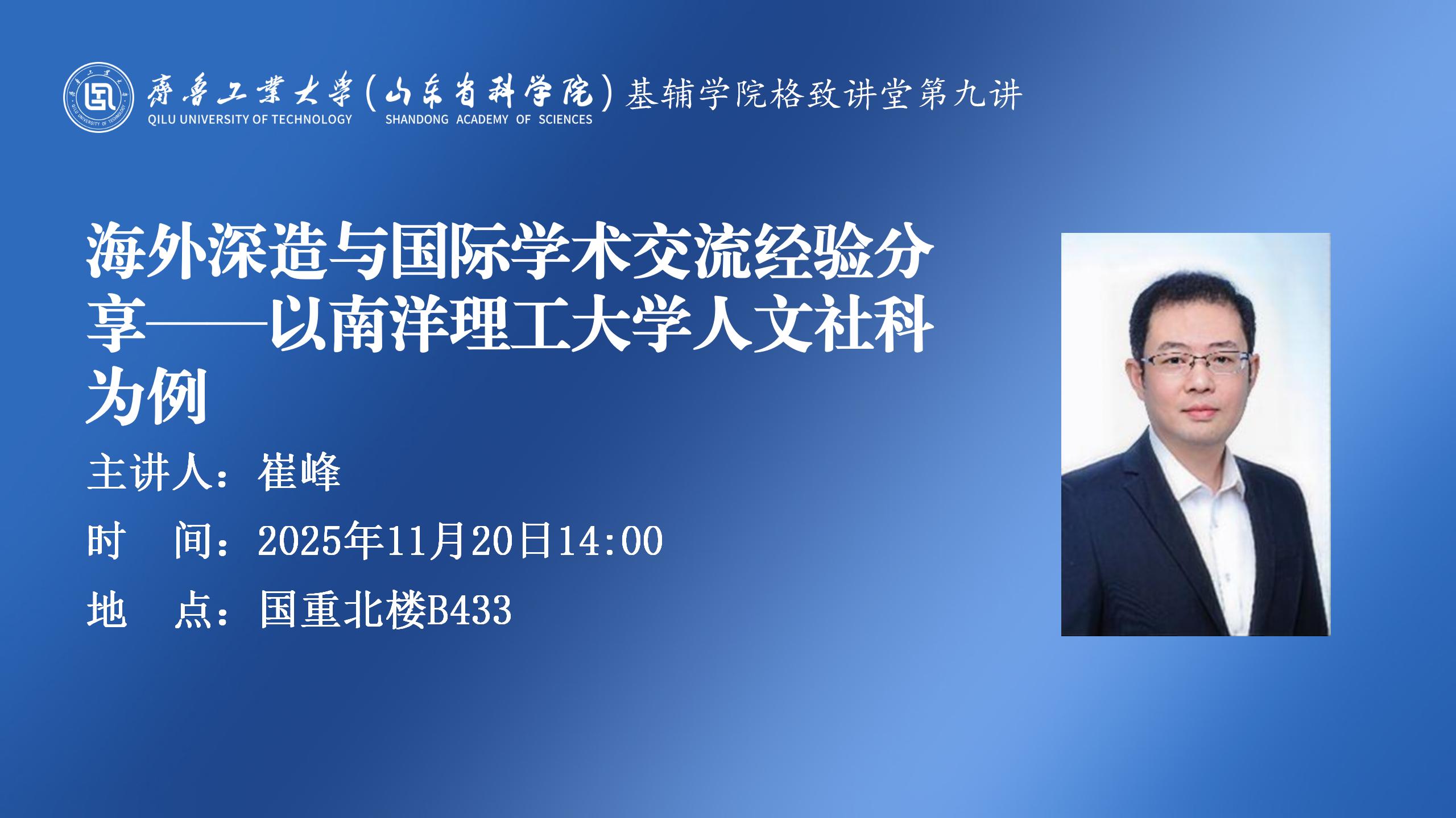 工大(科院)社科讲坛第118期:海外深造与国际学术交流经验分享——以南洋理工大学人文社科为例