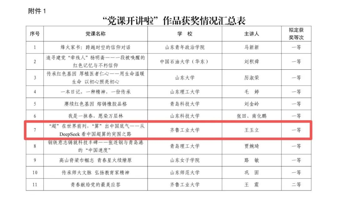 日前,山东省教育厅组织开展全省高校“党课开讲啦”评选活动,经过专家评审和多轮遴选,由齐鲁工业大学(山东省科学院)计算学部党委书记王玉立主讲的沉浸式党课《“超”在世界前列,“算”出中国底气——从DeepSeek看中国超算的突围之路》荣获一等奖,这一成绩不仅体现了省级主管部门对计算学部党建品牌与科技赋能思政创新的充分肯定 91香蕉视频,也标志着“科技强国”主题党课在全省高校教学体系中开辟了新路径,树立了新标杆。