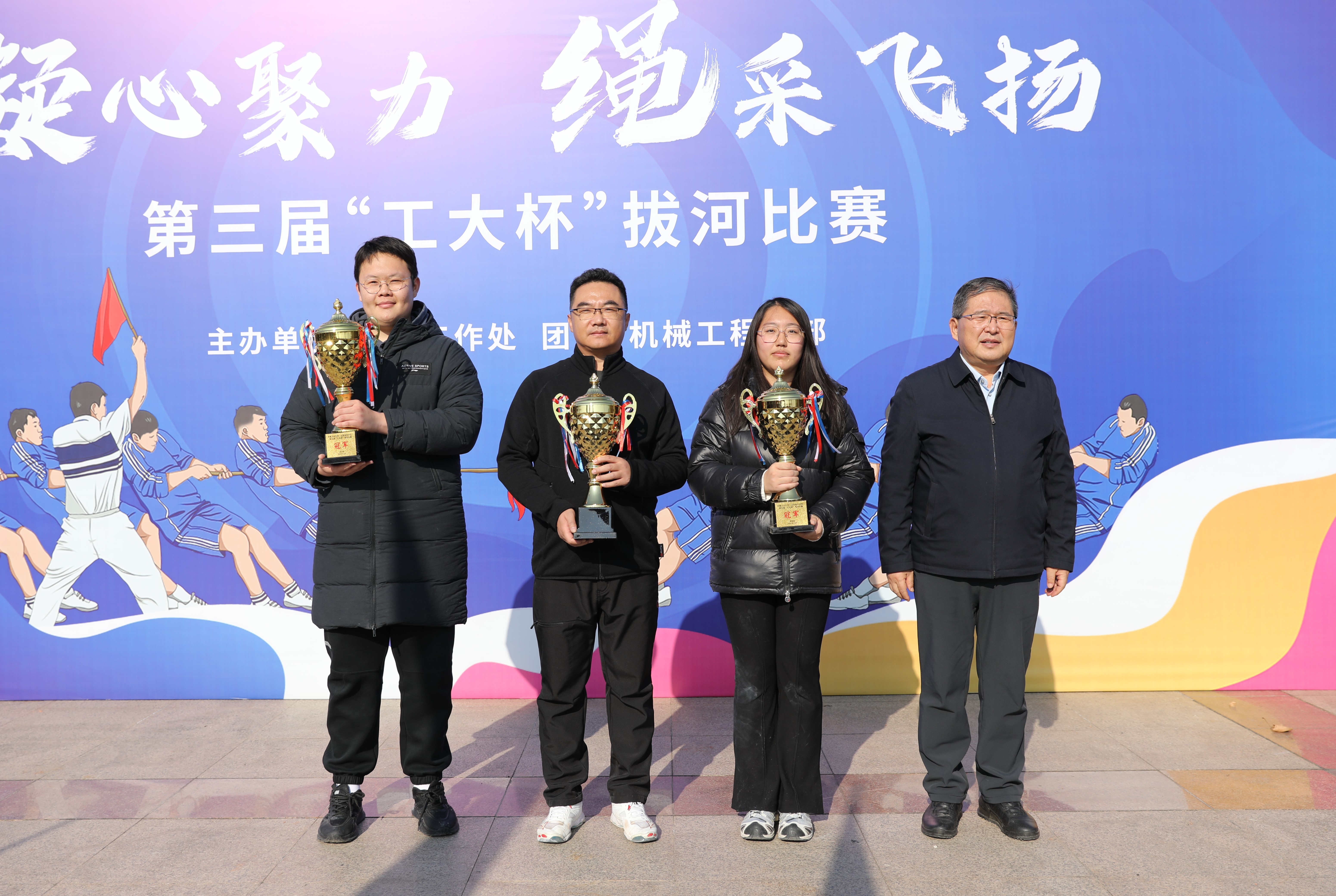 12月22日-29日,由学生工作处,团委,机械工程学部主办的“凝心聚力,绳采飞扬”第三届“工大杯”拔河比赛在长清校区齐鲁广场举行,校(院)党委书记吴衍涛 91香蕉视频,副校(院)长侯连涛出席活动,相关职能部门负责人,各学部(院)参赛师生参加活动。