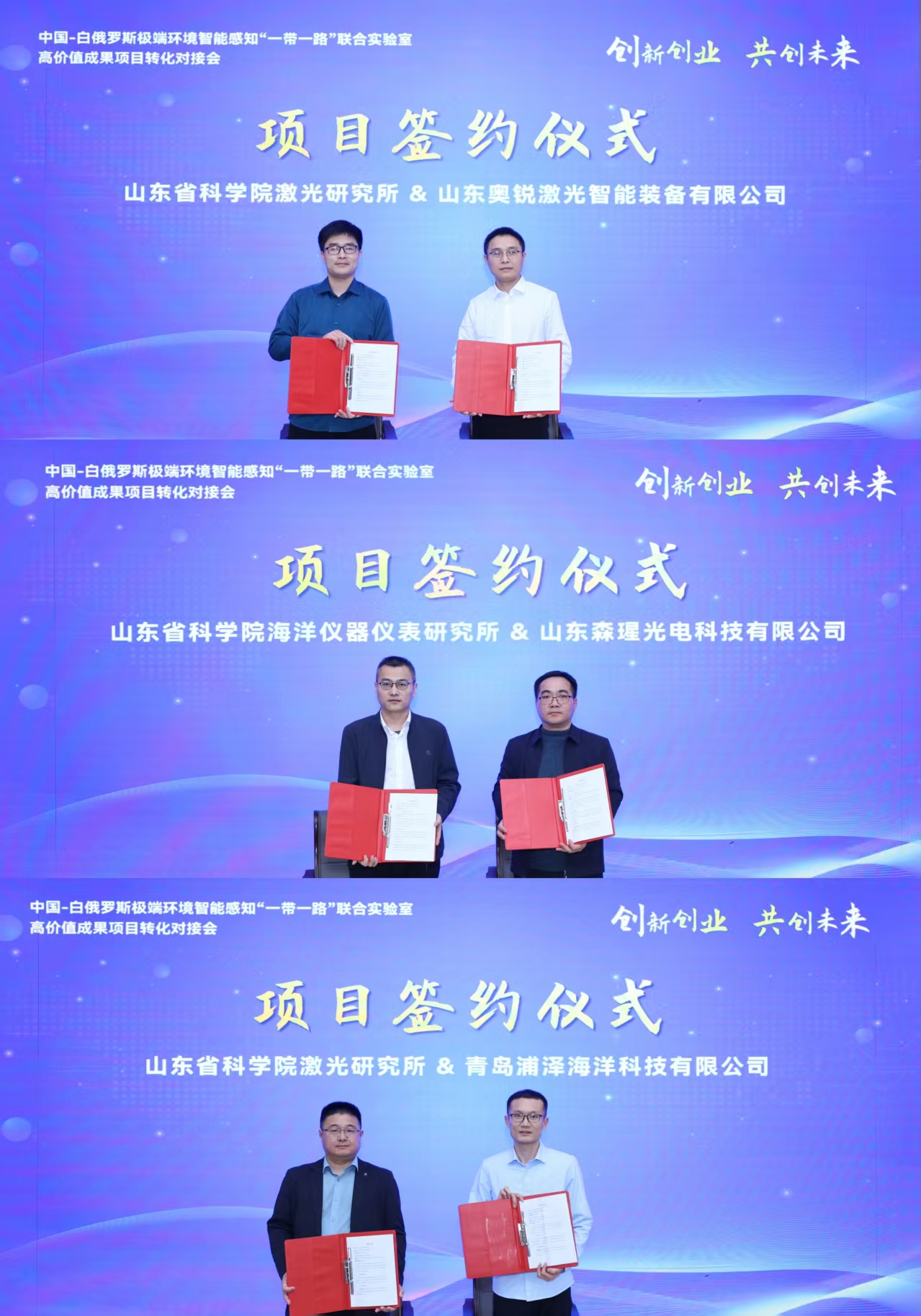 现场同步举行了中国-白俄罗斯极端环境智能感知“一带一路”联合实验室高价值成果项目转化对接会,山东省科学院激光研究所 91成人,山东省科学院海洋仪器仪表研究所,天津大学等专家学者进行了“光纤智能感知技术及其应用”“多参量多模态光纤感知技术及应用”“面向海洋极端环境相关仪器仪表的研发与突破”“智能感知用低功耗中红外光电芯片”等4项成果发布,达成“激光智能装备前沿技术与新产品开发”“金刚石薄膜温盐深传感器”“激光探测与测量技术”等3项合作签约。