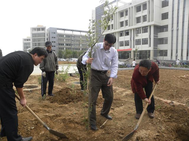 在校党委“校园是家园,人人搞建设”的精神指引下,结合《关于加强校园环境绿化工作,提高学校品位的通知》要求, 5月5日下午,在纪委书记周有波的带领下,文法学院广大师生和学校监察处、审计处、合作发展处的领导一起在校图书馆南门前广场开展了“装扮绿色校园”义务植树活动。