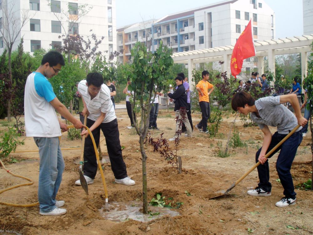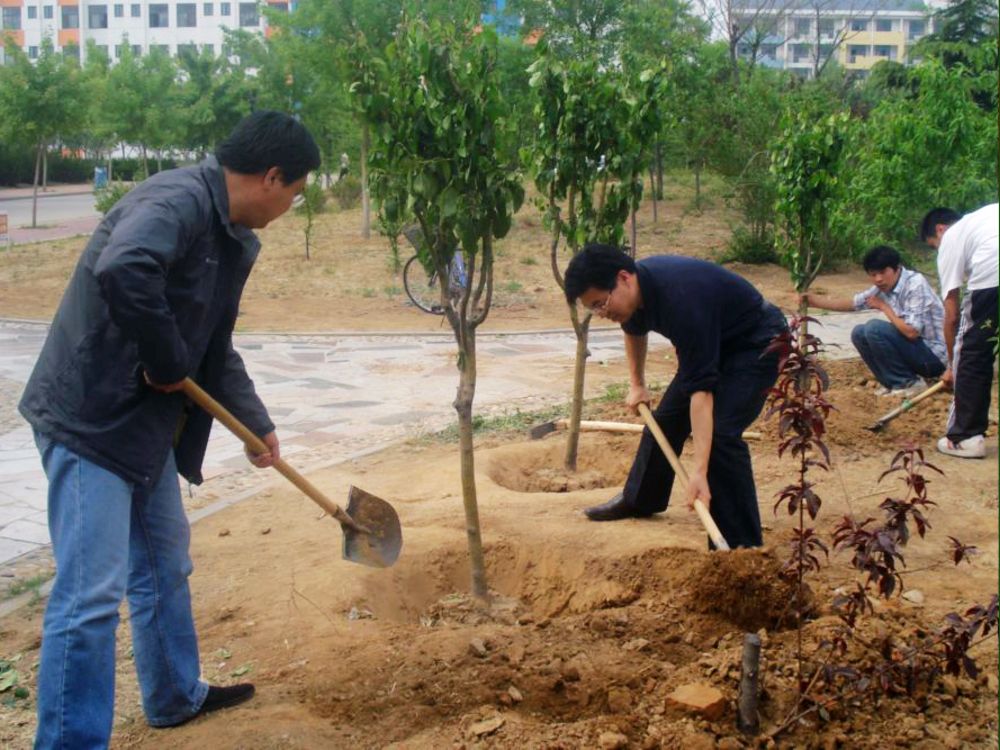 本次主题党日活动共分两天进行。5月4日,在前期调研、规划的基础上学院领导和绿化办老师进行了树种选择、移栽选点等施工安排,同时50余名入党积极分子对园区进行了全面彻底的卫生清扫和挖树坑等前期准备工作。5月5日,学院党政领导和青年教工、毕业生党员一起挥动铁锹栽种下20棵西府海棠。这些西府海棠是学院2011届毕业生捐赠的。同学们表示,西府海棠乃海棠中的上品,海棠花美艳高雅,“虽艳无俗姿”,被文人赋予“思念、珍惜”之寓意,代表了同学们对大学时光的纪念和对母校培育之恩的感激。