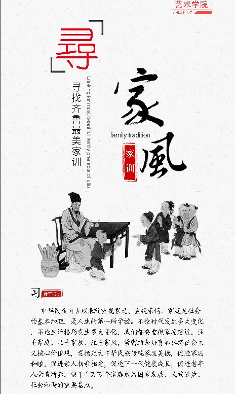 据了解,艺术学院在寒假期间号召全院学生开展了“寻找齐鲁最美家风,接力传承精神文明”活动,大家利用假期,走遍山东省17地市,寻访家风家训的好故事,从中汲取了中国传统文化中的正能量,为增强活动实效性,学院还通知过学院微信平台以及学生群 91看片,家长群发布倡议书,号召家长和学生共同参与,一起深入挖掘蕴藏在每一个家庭中的好家风好家训好故事,活动也得到了家长们的积极响应。