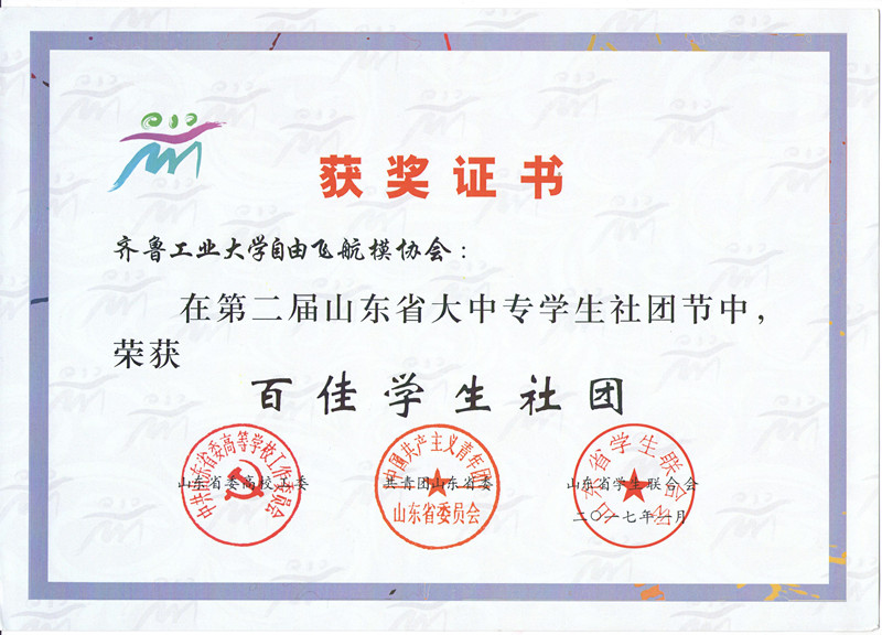 近日,共青团山东省委下发通知,对第二届山东省大中专学生社团节开展情况进行了表彰,齐鲁工业大学团委在全省众多团组织单位中脱颖而出,荣获优秀组织奖,并在11项比赛中荣获二等奖2项,三等奖2项,优秀奖6项,“自由飞航模协会”及“盘龙棍武术协会”被评为山东省“百家学生社团” 91香蕉视频