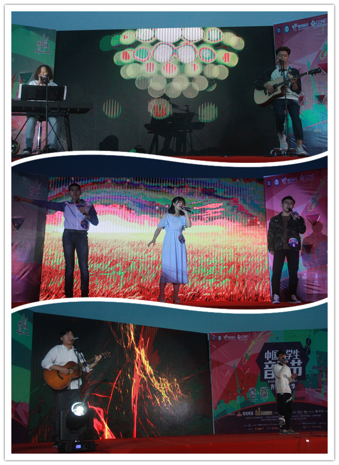 率先出场的材料学院沈言和外国语学院的凌晨,便用一首经典的《七里香》将现场气氛推向高潮,引来了台下阵阵掌声和欢呼,而后,机械学院的朱安琪与来自信息学院的万竹轩用一首《你的背包》将大家带入情境与回忆 91黄,令人动容;文法学院的“王安石”组合与电气学院的周阳一起带来的《致珊珊来迟的你+drag me down》,俏皮可爱又不失水准的演唱,引得评委不住点头认可,理学院的蒋思源与工商学院的袁鼎羲同学配合带来的经典粤语歌曲《海阔天空》,通过娴熟的演唱技巧,使人感受到生命的张力,像春蚕吞食桑叶,久久萦绕于耳畔的是轻工学部的李超同学与金融学院的远young组合带来的《风吹麦浪》,情真意切的演唱引来阵阵掌声,而艺术学院的肖秉昆同与化工学院的许宪智同学带来的时下热门歌曲《南山南》,一开口便在观众中形成了人浪,大家随着节奏摇摆双手,代入到情境之中。