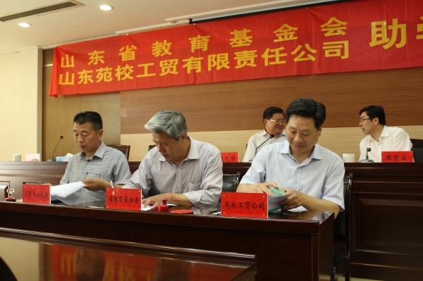 5月19日下午,由山东省教育基金会,山东苑校工贸有限责任公司联合设置的“专项助学金”签约捐赠仪式在办公楼352会议室举行,山东省教育基金会理事长陈光华 91香蕉视频,副秘书长翟道顺,山东苑校工贸有限责任公司总经理陈卫宏,齐鲁工业大学副校长周有波出席仪式,各学院(部)师生代表参加仪式,仪式由学生处处长刘传波主持。