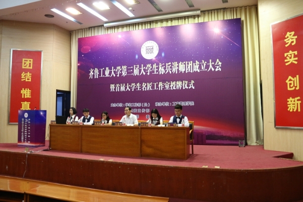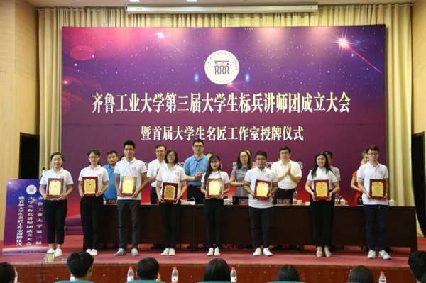 大会集中授予了张钦臻极匠工作室 91黄,刘怀顺装备设计创新工作室,邵珠建青年马克思主义者工作室等17个工作室为齐鲁工业大学首届学生名匠工作室,聘任了吴柯瑶,种宇涵,李华鹏等8位同学为第三届大学生标兵讲师团首席讲师,孟尧,李晓陇,李雨晴等5位学生为标兵讲师团讲师,聘任王先山,史岩彬,池振国等52位老师为讲师团和名匠工作室导师。