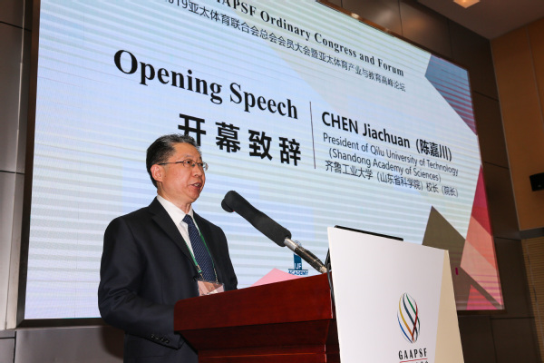 12月14日至16日,由亚太体育联合会总会,齐鲁工业大学(山东省科学院),济南广播电视台联合举办的2019亚太体育联合会总会(GAAPSF)会员大会暨亚太体育产业与教育高峰论坛在长清校区学术报告厅举行,亚太体育联合会总会执委会主席马文广,常务副主席谢广汉,副主席 91香蕉视频,总干事马文才,副主席高铭铎,殷健,常务执委,代司库黄宝基等总会执委会委员参加会议,来自40多个国际和地区单项体育组织的代表到会祝贺并参加论坛。