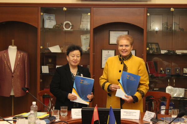 代表团与乌方基辅学院 91成人视频,国际合作处,研究生处,实习实验中心,化工学院等负责人进行了座谈交流,张洪英和维塔利·恰班签署两校学生交流项目协议,代表团一行还参观了化学实验室,电子实验室,服装设计展等地。
