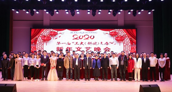 福猪踏雪去,金鼠迎春来,12月30日晚,由党委宣传部 91香蕉视频,学生工作部(处),团委,体育与文化产业学院主办的第一届“工大(科院)之春”2020年新年文艺晚会在艺体中心大礼堂隆重举行,党委书记王英龙,党委副书记张洪英,副校(院)长马文才,曹茂永,纪委书记房克乐出席晚会,校(院)有关部门负责人及师生800余人参加活动。