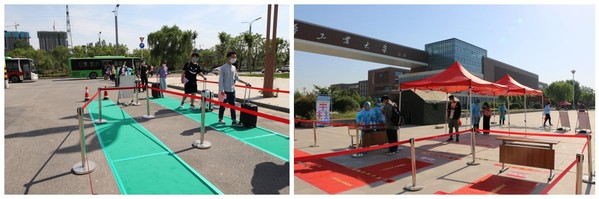 乘坐学校(科学院)接站车返校的学生通过绿色通道入校,以其他方式返校的学生经过红色通道入校 91入口.