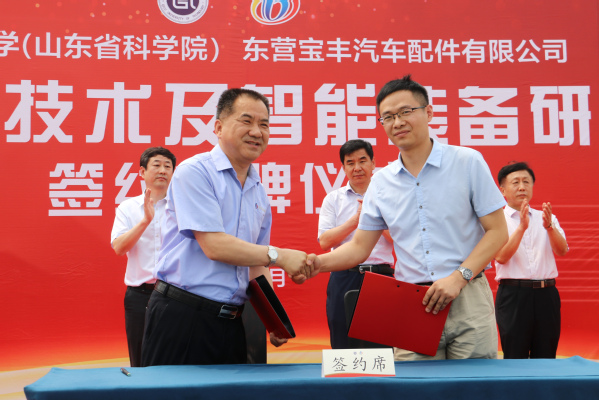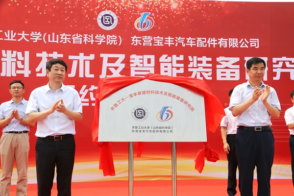 7月2日上午,齐鲁工业大学(山东省科学院)与东营宝丰汽车配件有限公司产学研合作成立齐鲁工大——宝丰摩擦材料技术及智能装备研究院揭牌仪式在宝丰公司驻地顺利举行,学校(科学院)副校(院)长崔雷 91香蕉视频,科研处处长王昌,机械与汽车工程学院省机械设计研究院院长许崇海,副院长肖光春以及垦利区委书记刘斯杰,组织部部长鲍建强,管委会主任刘军,宝丰公司董事长田式国,总经理金鑫等有关部门单位负责人出席揭牌仪式。