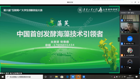7月23日,齐鲁工业大学(山东省科学院)第六届“互联网+”大学生创新创业大赛决赛成功举办,学生工作部(处)处长,创业学院院长刘传波,学生工作部(处)副处长邵丰出席决赛并讲话 91香蕉视频,本次决赛邀请了著名投资人,双创教育知名专家担任评委,通过线上平台进行并向全校(院)师生直播,参赛项目指导教师及学生500余人参加了比赛,数千人观看了直播。