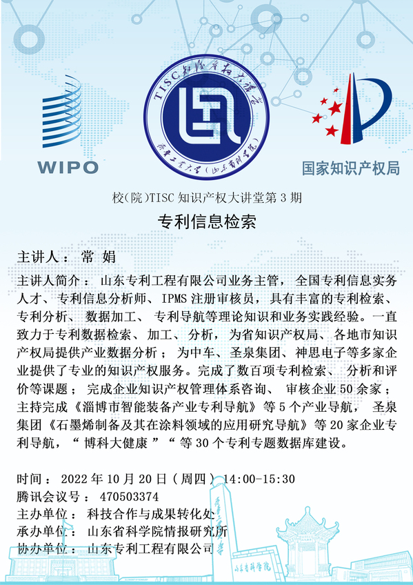 校(院)TISC知识产权大讲堂第3期:专利信息检索