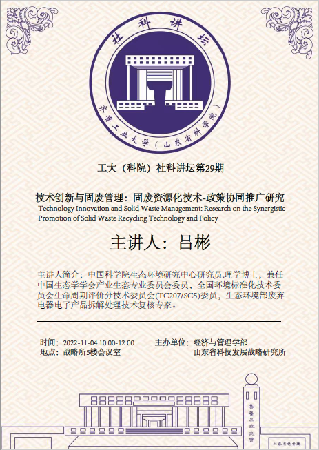 工大(科院)社科讲坛第29期:技术创新与固废管理:固废资源化技术—政策协同推广研究