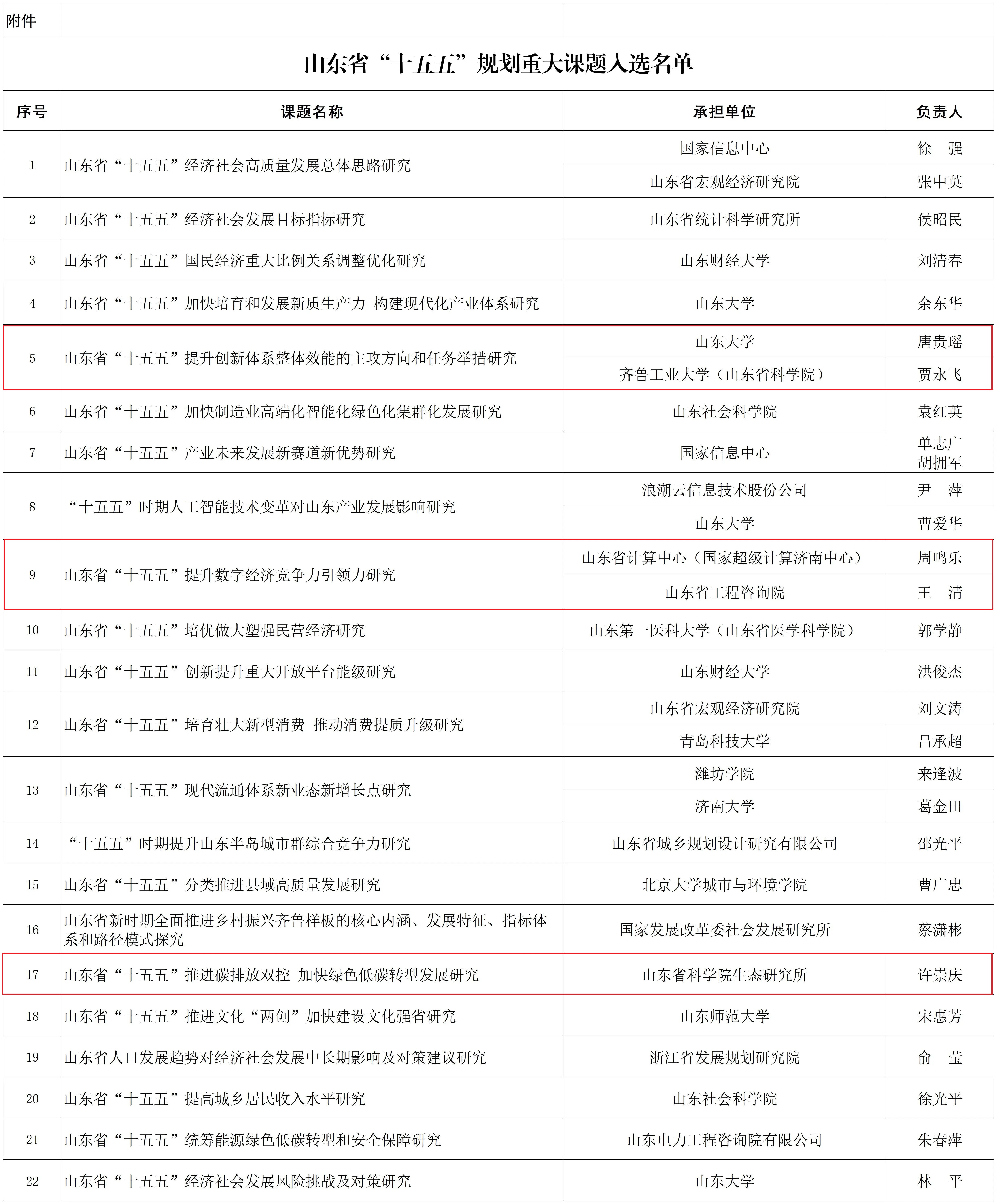 近日,山东省发展改革委发布公告,2024年山东省“十五五”规划重大课题共立项22项,其中齐鲁工业大学(山东省科学院)立项3项 91香蕉视频,仅次于山东大学。