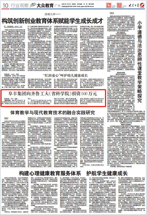 【大众日报】阜丰集团向齐鲁工大(省科学院)捐资500万元