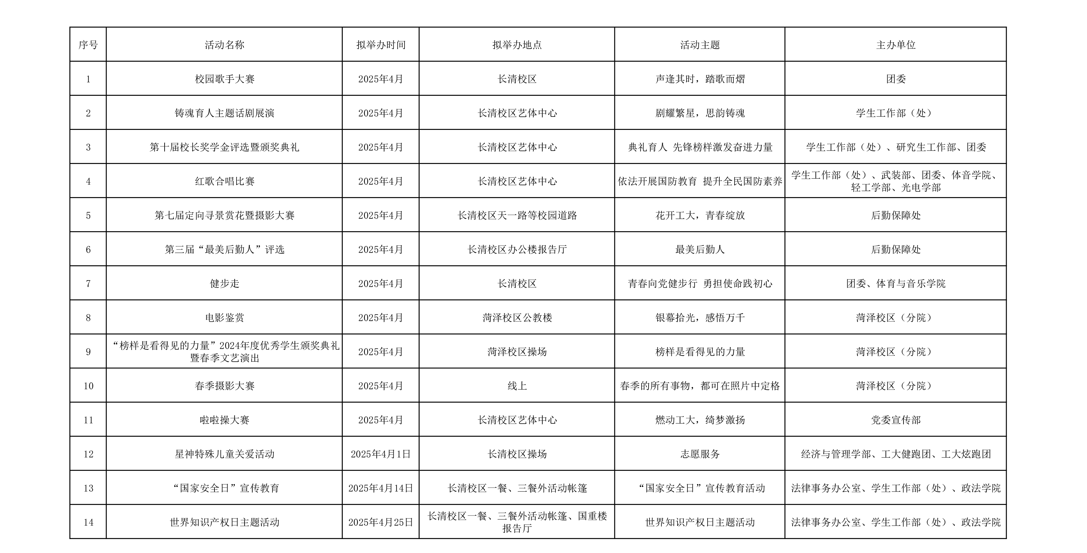 校(院)文化活动月历(2025年4月预告)
