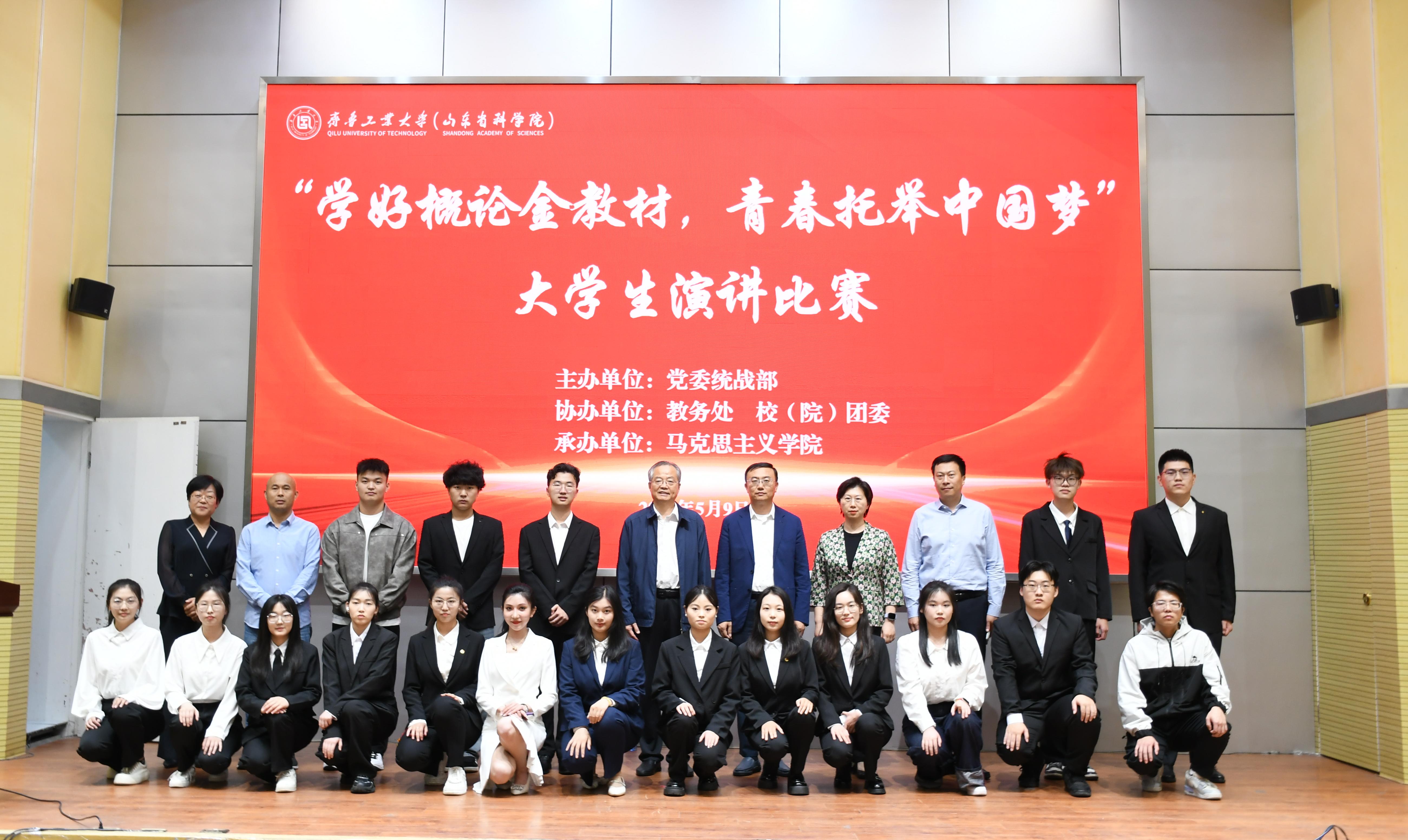 5月9日 91香蕉视频,齐鲁工业大学(山东省科学院)在办公楼一楼学术报告厅举办“学好概论金教材,青春托举中国梦”大学生演讲比赛,副校(院)长乔丙武出席活动。