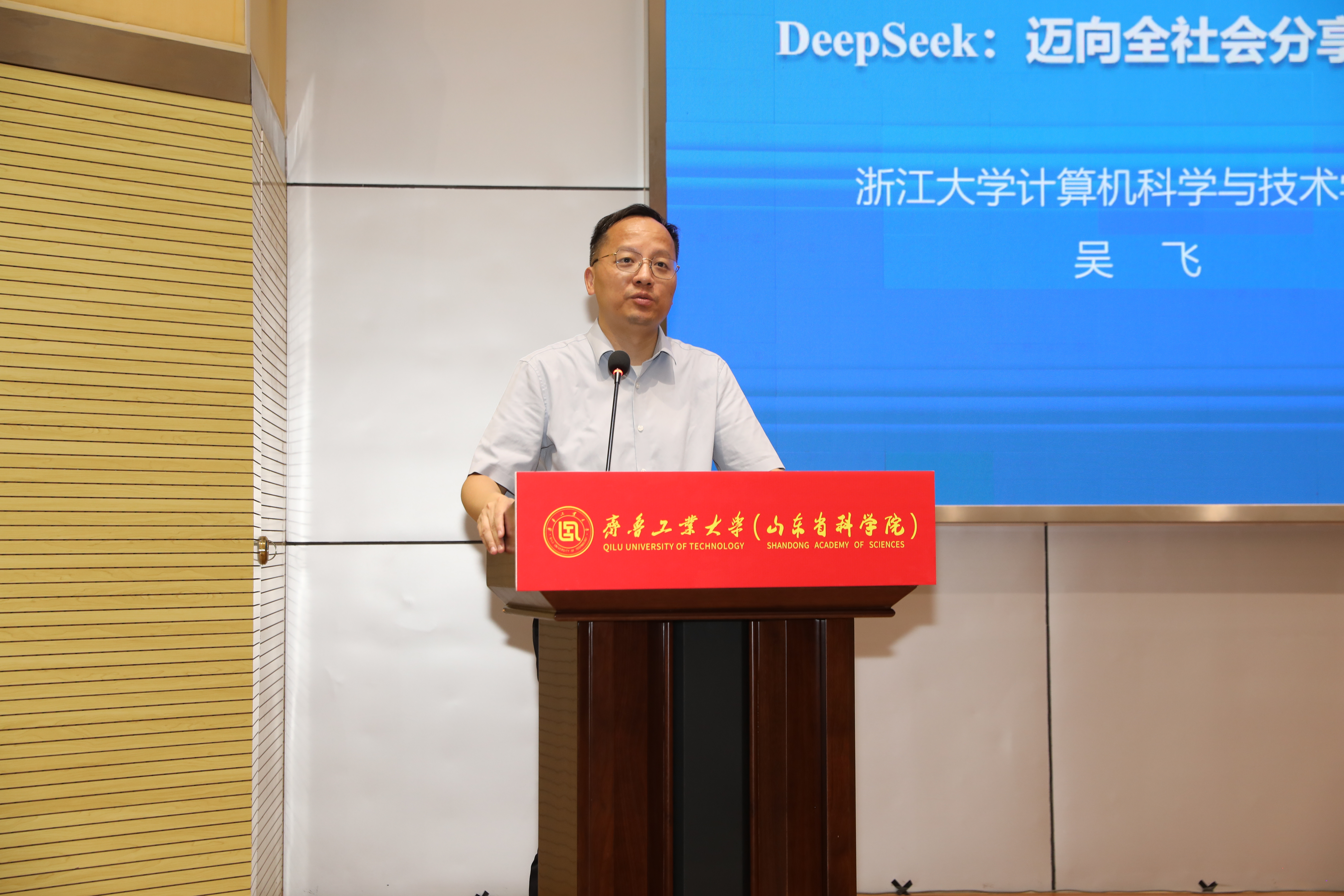 7月6日,山东省人工智能通识教育系列讲座第八讲在长清校区学术报告厅举行 91香蕉视频,山东省教育厅高等教育处处长曾宪文,校(院)长段培永,副校(院)长许崇海出席活动,浙江大学求是特聘教授吴飞作专题报告,校(院)相关部门负责同志,省属高校师生代表线上线下共同参会,活动由许崇海主持。