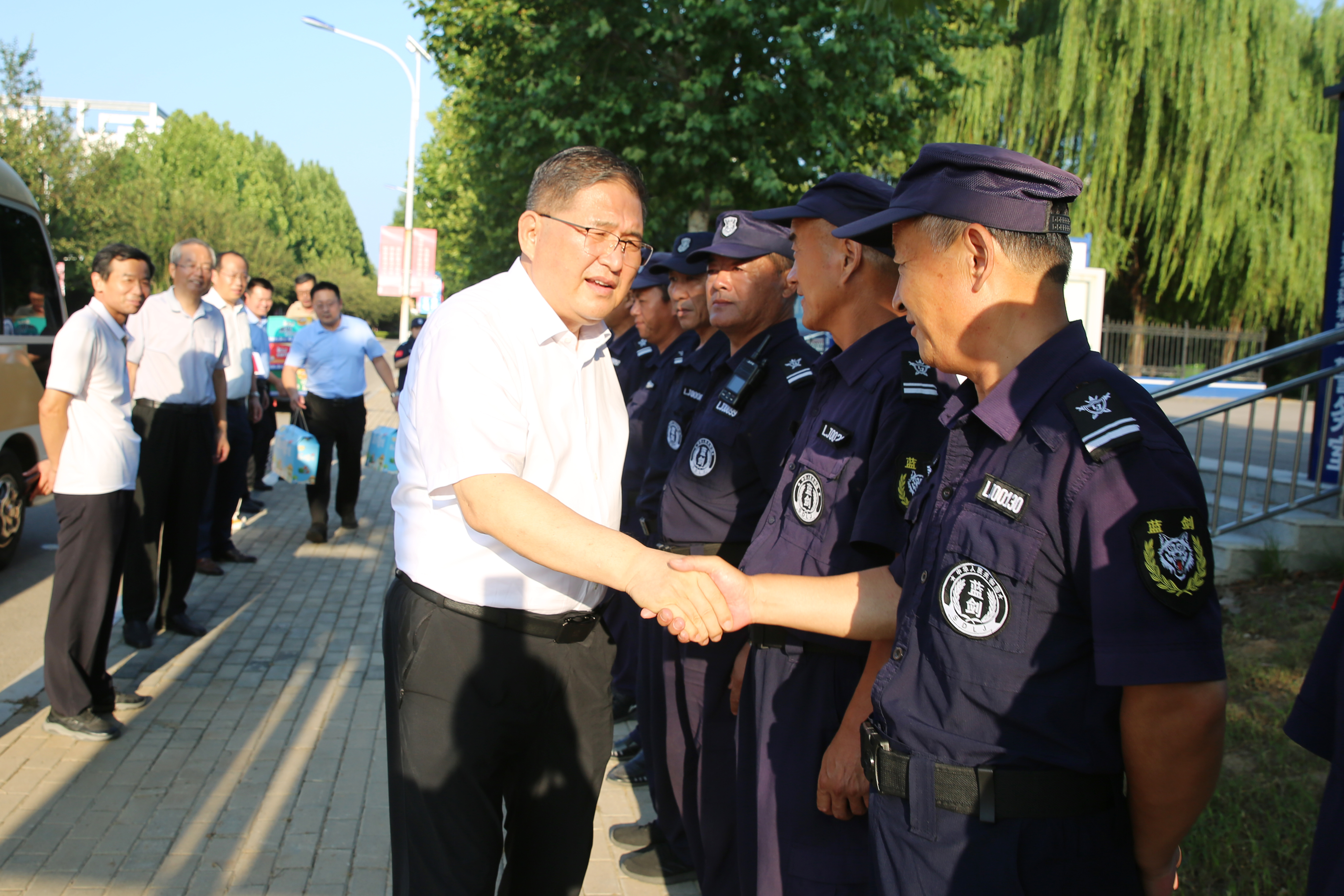 每到一处,校(院)领导都与在场的工作人员亲切交谈,详细了解坚守岗位职工的工作及生活情况,认真听取暑期值班值勤,安全保卫,餐饮服务 91黄,医疗保障,学生管理,工程建设等方面工作情况介绍,叮嘱大家在坚守岗位的同时,要注意防暑降温,做好安全防护,合理安排工作和休息时间,并将一份份满载关爱的防暑降温慰问品送到大家手中。